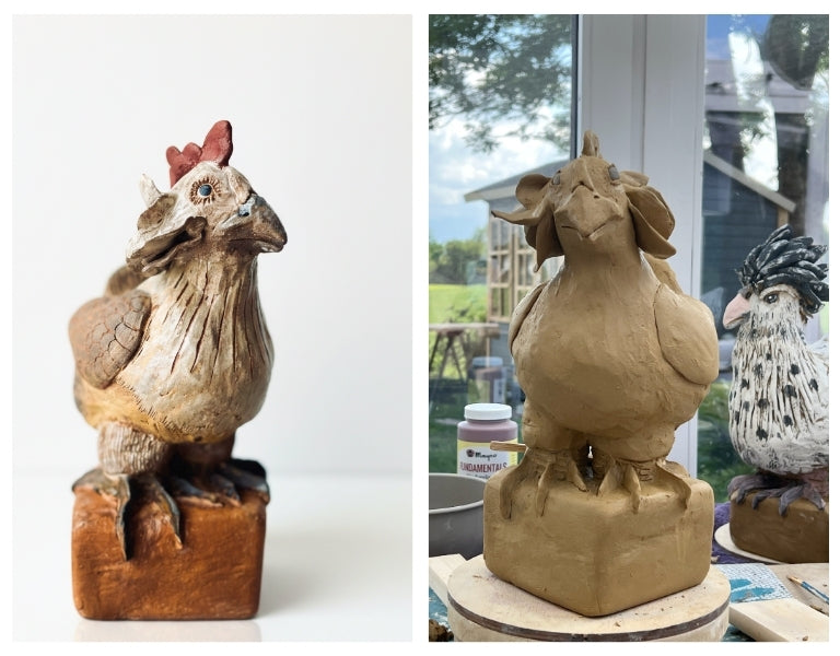 Seit ich Beth Moons „Literarische Hühner“ gelesen habe, sehe ich diese Tiere mit ganz anderen Augen. Meine Faszination ist riesig, und das fließt direkt in meine Keramik ein. Jedes meiner Hühner erzählt jetzt seine eigene kleine Geschichte und zeigt die Anmut, die ich so an ihnen schätze.